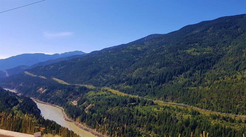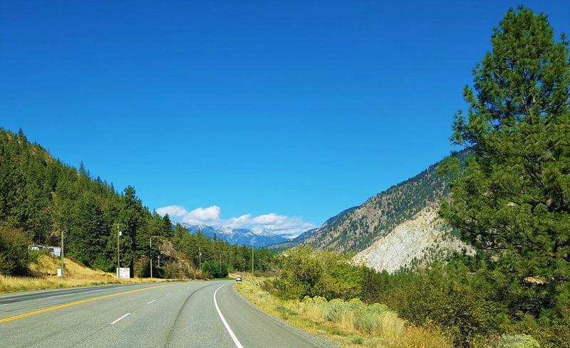 At Lytton, we turned south and now looked out on the mighty muddy Fraser River. The climb up and over Jackass Mountain was next.