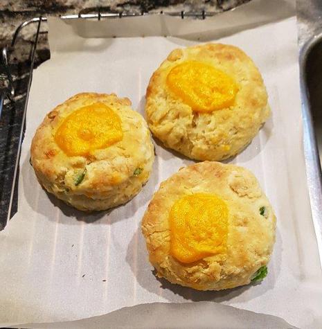 Even though we only have a small oven, I thought I would try making Jen's favourite: Cheese & Jalapeno scones.